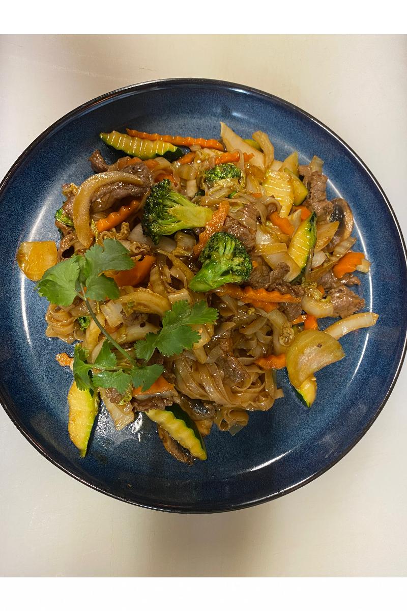 Biffkjøtt og stekt rispasta, Grønnsaker og hjemmelagetsaus