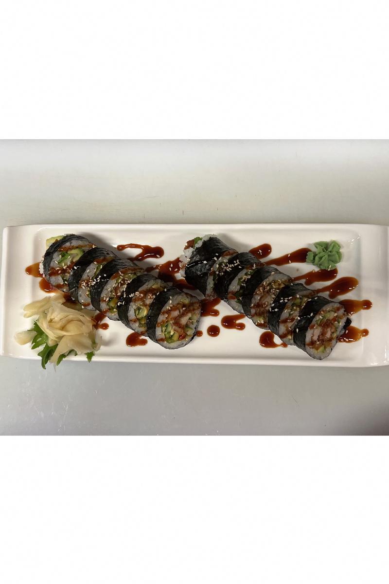 And, agurk,avocado,toppet med chillimajones og teriyakisaus